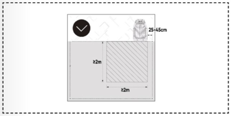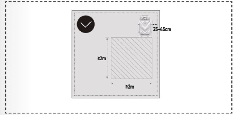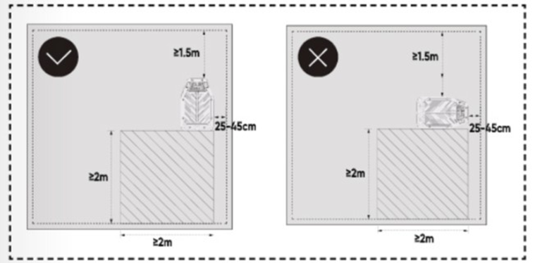 Het oplaadstation moet zich tussen 25 en 45 cm van de rand van het gazon bevinden.