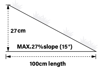 3. De hellingshoek is steiler dan 15°.